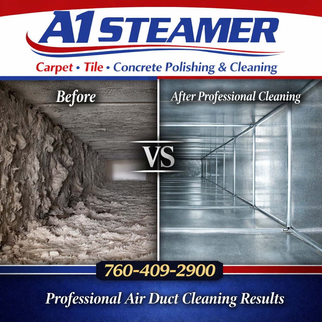 The air inside your Bermuda Dunes home should be a refuge from the dusty desert environment outside — but if your ductwork hasn't been professionally cleaned recently, the air your HVAC system is circulating may be carrying more of that desert environment than you realize. Dust, fine silica particulate, pet dander, allergens, and even mold spores accumulate inside residential ductwork over time, recirculating through your living spaces with every cooling or heating cycle. A1 Steamer Cleaning Solutions provides professional duct cleaning in Bermuda Dunes that genuinely improves the air you breathe at home. Bermuda Dunes is nestled in the heart of the Coachella Valley, where wind events regularly deposit fine desert dust across the landscape and into every structure. For HVAC systems running for months at a time to battle the summer heat, the volume of air — and the particulate it carries — being pulled through residential ductwork is enormous. Over the years, the interior of duct channels accumulates layer after layer of this material, creating a reservoir of airborne contaminants that no filter fully captures and no amount of regular cleaning reaches. Professional duct cleaning from A1 Steamer Cleaning Solutions is the solution. Our duct cleaning process uses powerful negative-pressure vacuum equipment combined with mechanical agitation to dislodge and fully remove the contamination from inside your duct system. We seal off supply and return registers to contain the process, create negative pressure throughout the duct network, then work systematically through each branch to break loose and extract built-up debris. The result is a duct system that flows freely and delivers genuinely cleaner air to every room in your home. Beyond air quality, there is a direct energy efficiency benefit to professional duct cleaning in Bermuda Dunes. Restricted ductwork caused by accumulated debris forces your HVAC system to work harder to maintain temperature — and in a climate where air conditioning runs for months on end, that additional effort translates directly into higher electricity bills. Clean ducts allow your system to operate at its designed efficiency, which can make a measurable difference in your monthly cooling costs. We also inspect ductwork during cleaning for leaks, disconnections, and other issues that can significantly reduce system efficiency and distribute conditioned air to areas like attics and crawlspaces instead of your living areas. Finding and addressing these issues alongside a cleaning service provides maximum benefit from a single service call. Contact A1 Steamer Cleaning Solutions today to schedule professional duct cleaning for your Bermuda Dunes home. Breathe easier, stay cooler, and protect your HVAC investment — call now for your free quote. The duct cleaning service from A1 Steamer Cleaning Solutions in Bermuda Dunes is professional, clean, and efficient. We protect your home throughout the process and leave no mess behind when we are done. The improvement in air quality is typically noticeable within hours of completion, and many clients report sleeping better and experiencing fewer allergy symptoms within the first few days after service. Call today to schedule your free quote.